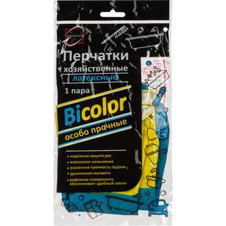 Перчатки латексные Bicolor синие/желтые особопрочные "S/M/L/"